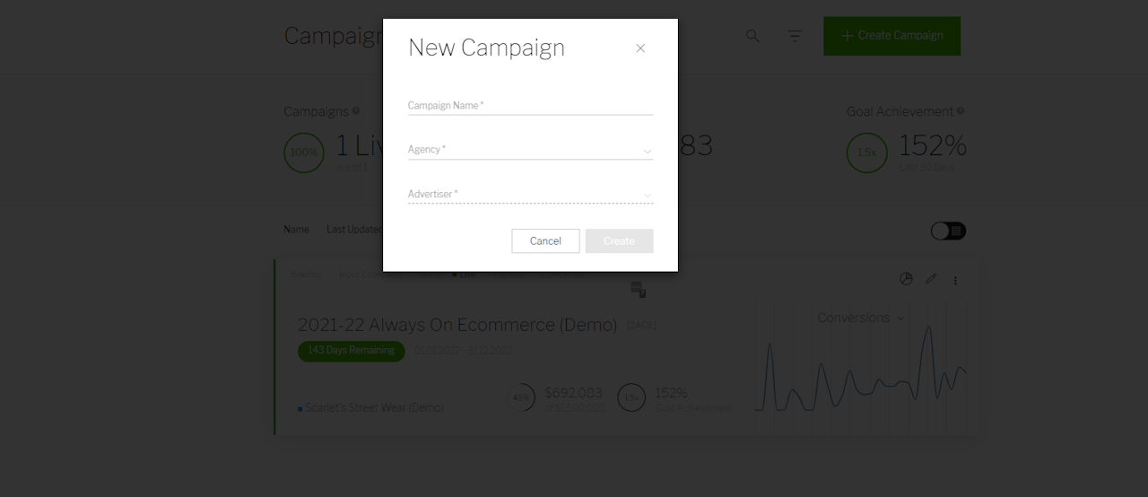 Enter a Campaign Name that is recognisable to you and any stakeholders that will be viewing campaign data. This name will be viewable in all reports and dashboards and can be changed at a later date.