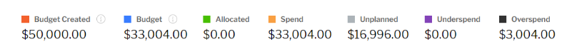 For In-House activity, the same totals will be displayed as above with the exception of the Contract. Instead a “Budget Created” value will display which is the total budget available to allocate to the campaign.