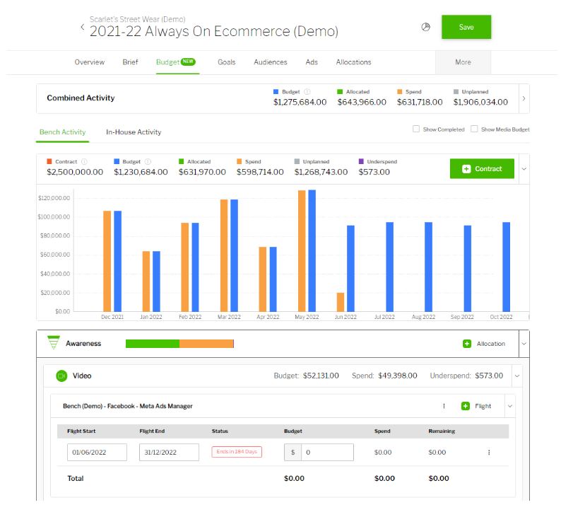 Budgets for flights can only be allocated to the maximum amount set by the either Contract or overall campaign budget.